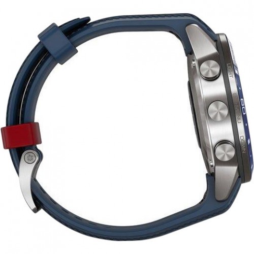 Смарт-годинник сумісність iOS Android повідомлення: + пульсометр: + (Оптичний) час роботи: Smartwatch: до 12 днів, GPS: до 28 дисплей: transflective memory-in-pixel (MIP) 1,2 ремінець: силікон колір корпусу: сріблястий і синій колір ремінця: синій
